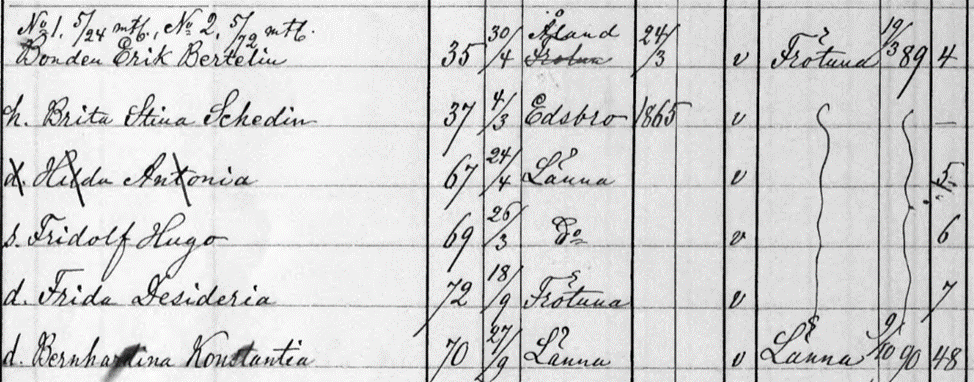 Första gången jag hittar familjen Bertelin är i kyrkboken från 1886-1895