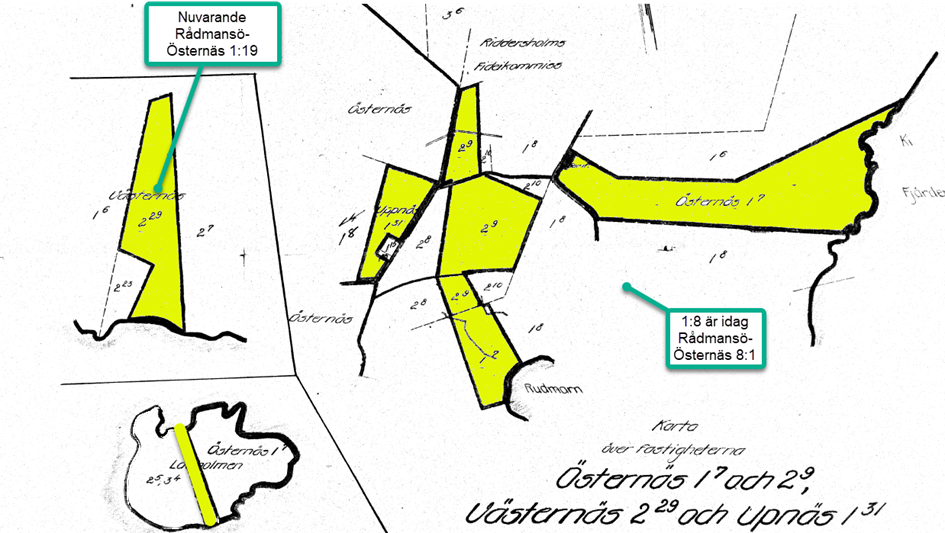 Innan köpet styckades två delar av. Dels den lilla del som fanns på Ladholmen och dels lotten mot Östersjön som numera heter Rådmansö Östernäs 1:19.