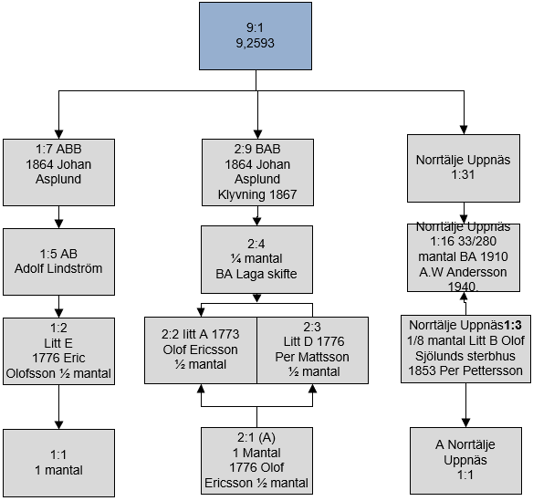 Norrbacken bildades av tre skiften, 1:7, 2:9 samt Uppnäs 1:31