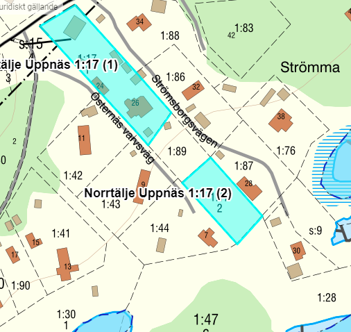 Från Norrtälje Uppnäs 1:16 har även följande fastigheter styckats av 1:18, 1:25, 1:30, 1:31, 1:46, 1:79-81