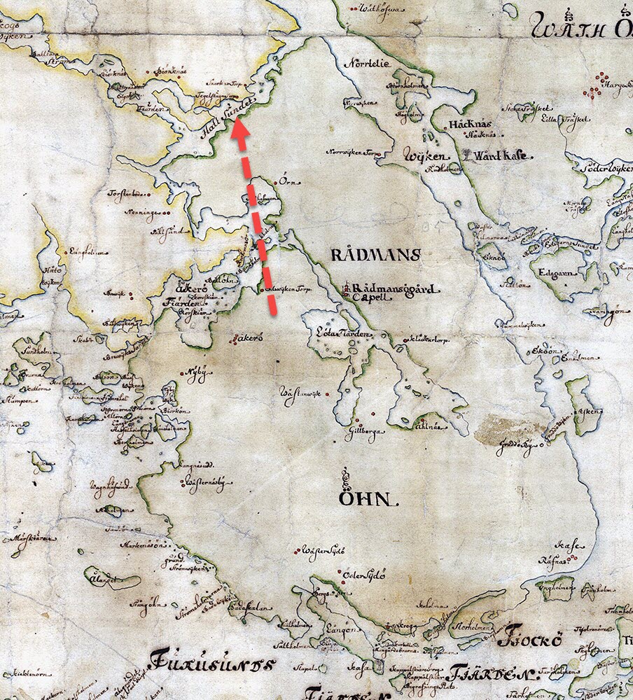 Ända till 1750-talet var Rådmansö verkligen en ö. Den smalaste passagen som sedan växte igen hette Hattsundet, se kartan nedan.