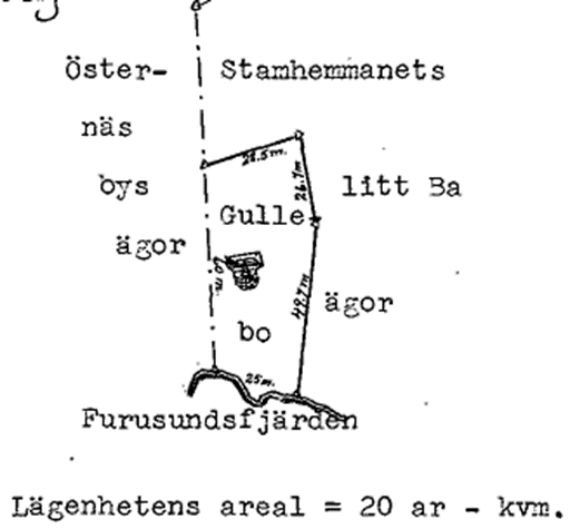 Arrendatorn fick behålla den vanliga vägen fram till brunnen. Fastigheten tillhörde från början Rådmansö-Östernäs 3:23. 1927 utnyttjade Karl Axel Petterson rätten att enligt Ensittarlagen från 1925 rätten att inlösa den mark som han hade nyttjanderättsavtal på.