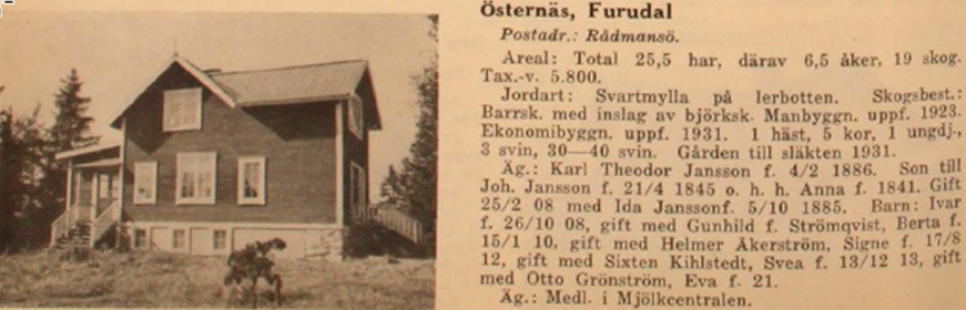 August Viktor Jansson snickare född Rådmansö 1881-1946, gifte sig 1906 med Alma Matilda Jansson född Andersson Rådmansö, född på 1883 ska även ha bott här.