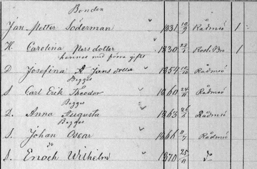 Carl Anders Djurberg 1793 Gottröra som var gift med Eva Jansson Westerberg, född 1802 på Wärmdö företrädde ain aon företrädde sin son August Söderman, född 1834 vid denna förrättning. August hade även en syster som hette Johanna Catharina, född 1829.