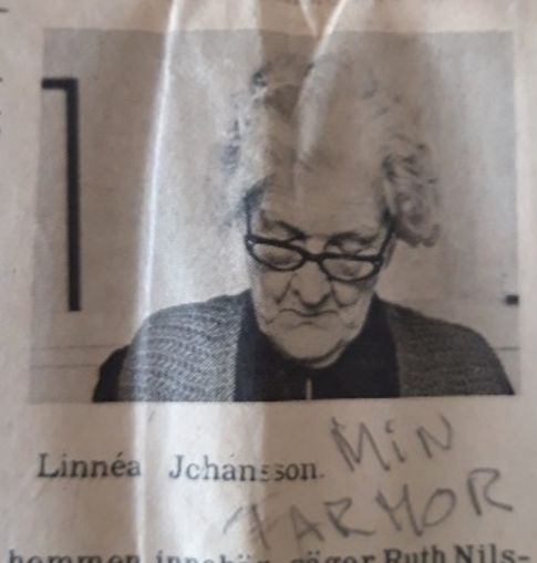 Norrtäljetidningen 2 nov 1973 är det ett reportage om Östernäshemmet som skulle läggas ner, min farmor Linnea bodde där och hon liksom de andra var inte glada, farmor flyttade till Rådmansö 1909 gifte sig med Aldo och så småningom drev de trädgårdsmästeri på Bussholmen. Efter nedläggningen av hemmet flyttade farmor till Bergshamra, där hon tack och lov trivdes och hade det bra.