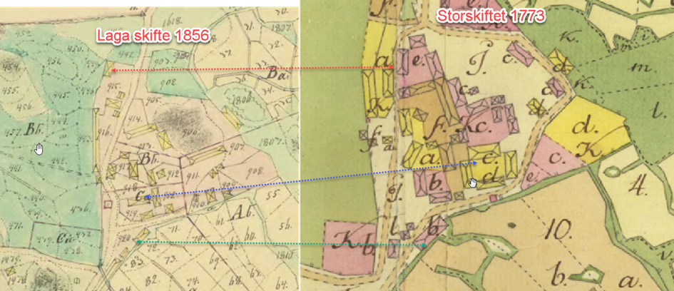Marken som ägdes är markerad med D på kartan från storskiftet.