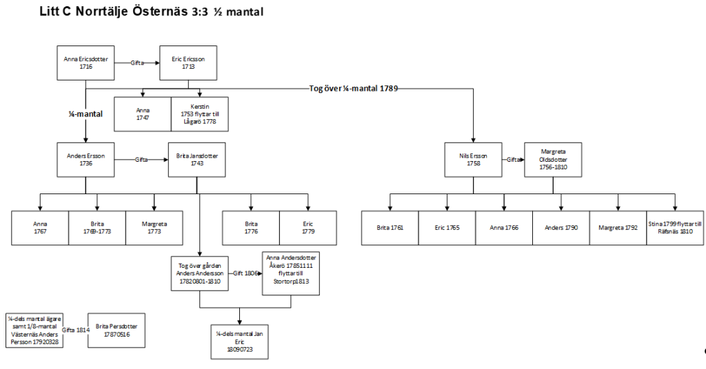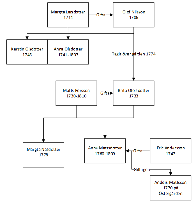 Sonen Anders tog sedan över halva gården och gifte sig med Brita Jansdotter född 1743. De fick barnen Sonen Nils Ersson tog över den andra halvan 1789 med sin hustru Margreta Olsdotter född 1756.